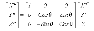 Z] は回転前の位置ベクトル, [X", Y", Z"]